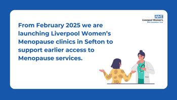 From February 2025 there will be an additional 48 Menopause appointments in Sefton per month. From March 2025 we expect this number of additional appointments to increase. These clinics are for patients already referred to Liverpool Women's. Appointments will be given to patients in order of their waiting time. All these appointments will support seeing patients already referred to Liverpool Women’s to be seen sooner.