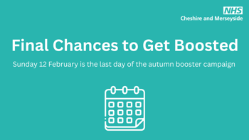 Jayne Wood, Director of Vaccine and Testing Operations, Cheshire and Merseyside, said: "There is just one week left of the autumn booster campaign, so if you are eligible for a booster but have yet to take up your latest dose, please do so before the end of next week.